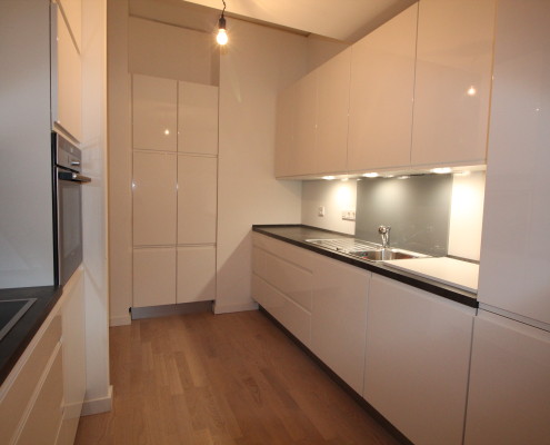 Die im Erdgeschoß gelegene 3-Zimmerwohnung betreten Sie über einen kleinen, privaten Vorgarten, der mit einer dauergrünen Hecke eingefriedet ist. Die bodentiefen Fenster und Türelemente gewähren einen großzügigen Lichteinfall und die Süd-Westausrichtung des Wohn/Essbereiches verwöhnt Sie ab Mittag mit Sonnenschein. Dem großzügigen Wohn/Essbereich schließt sich die moderne, weiß gestaltete Küche an. Im hinteren Bereich der Wohnung befinden sich das Masterbad mit Badewanne und Dusche, ein weiteres Duschbad kann ideal von Gästen genutzt werden. Die ansprechende Designausstattung der Bäder von Philippe Starck besticht durch ihre Hochwertigkeit und das puristische, edle Design. Ein Hauswirtschaftsraum steht zur Unterbringung von Waschmaschine und Trockner zur Verfügung, des weiteren finden Sie hier Stauraum für Staubsauger und andere Dinge.